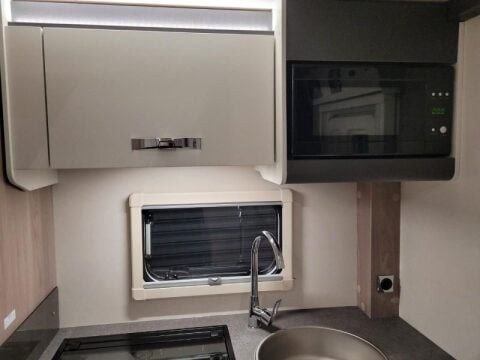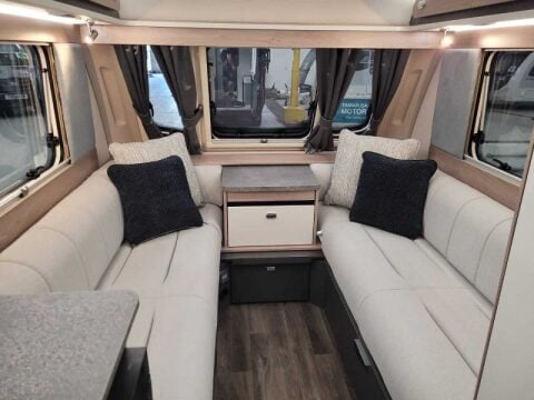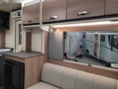 Key Features: 1. New Theford 83 litre fridge Freezer 2. NEW Truma CombiNEO 2 in 1 heating sytem & hot water. 3. Alloy wheels 4. NEW sprung seat bases and tri-foam backrests for optimal seating, sleeping comfort and easy storage. 5. LED lighting throughout with over-locker lights, lounge downlights, wireless charging pad and front USB points for better connectivity. 6. Thetford oven/grill with three-burner gas hob and one electric hotplate. 7. Solar Panel 6. Swift Smart Construction