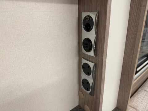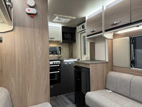 Striking grey exterior Half diamond cut alloy wheels Roof mounted 120W solar panel ATC braking system BBQ point / 230 mains socket Heavy duty corner steadies (twin axles) Alarm with key fob operation Rain guards Wi-Fi plug in harness Wireless phone charging pad Exclusive fabric scheme Exclusive lounge pelmet lighting Digital 4’’ control panel Atmospheric lounge and kitchen lighting Lounge mirror* *except Compact