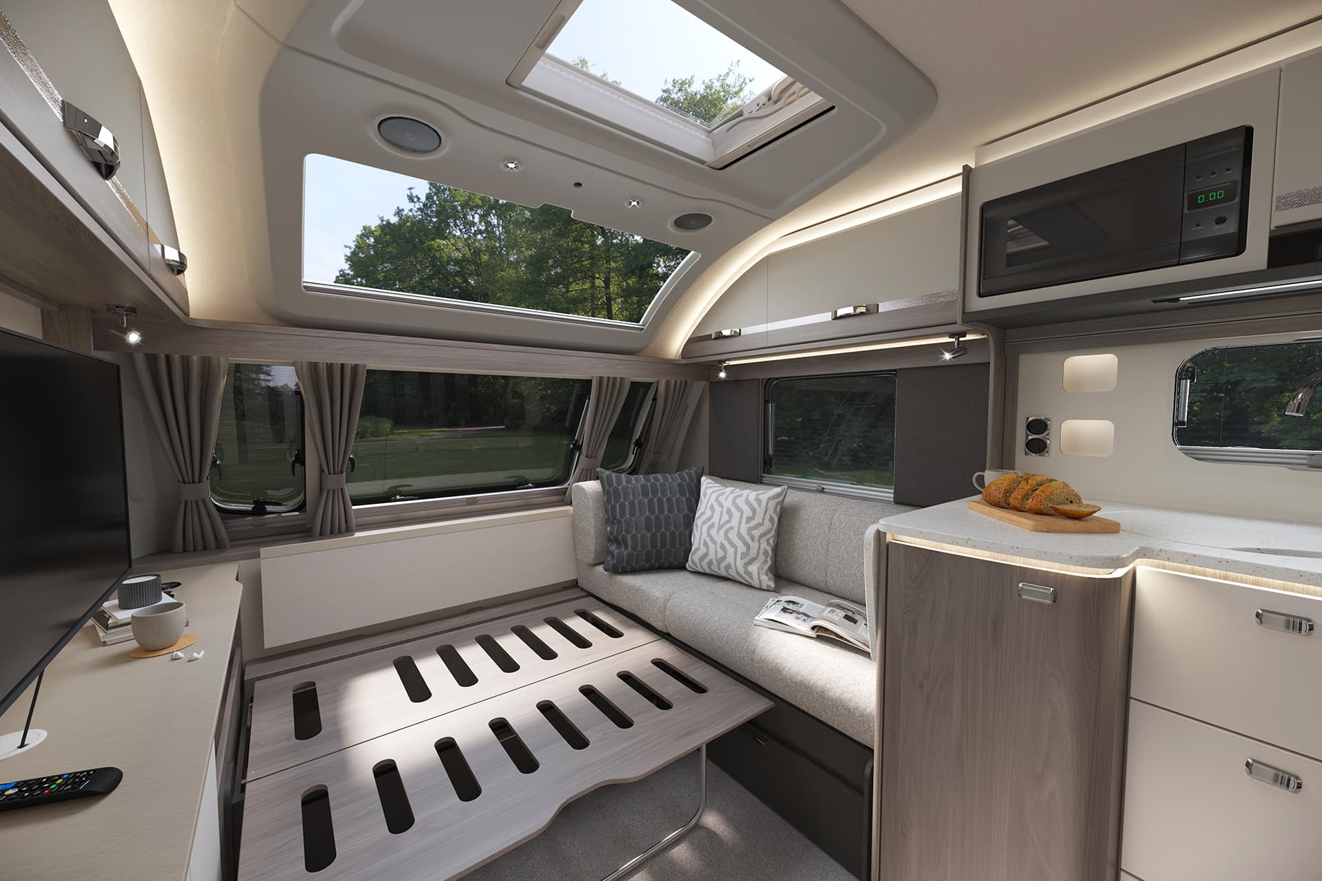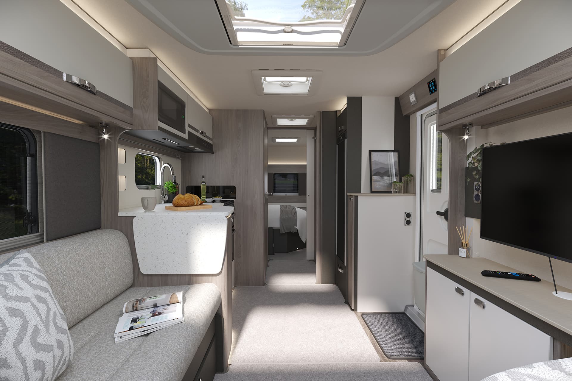 Step inside Conqueror Grande and experience a new level of touring comfort. With its 8ft-wide body, Conqueror Grande gives you extra space where it matters most. From a bright, open front lounge to generous room around the bed for easier movement and added convenience, every detail is designed to make your time away feel effortlessly spacious.