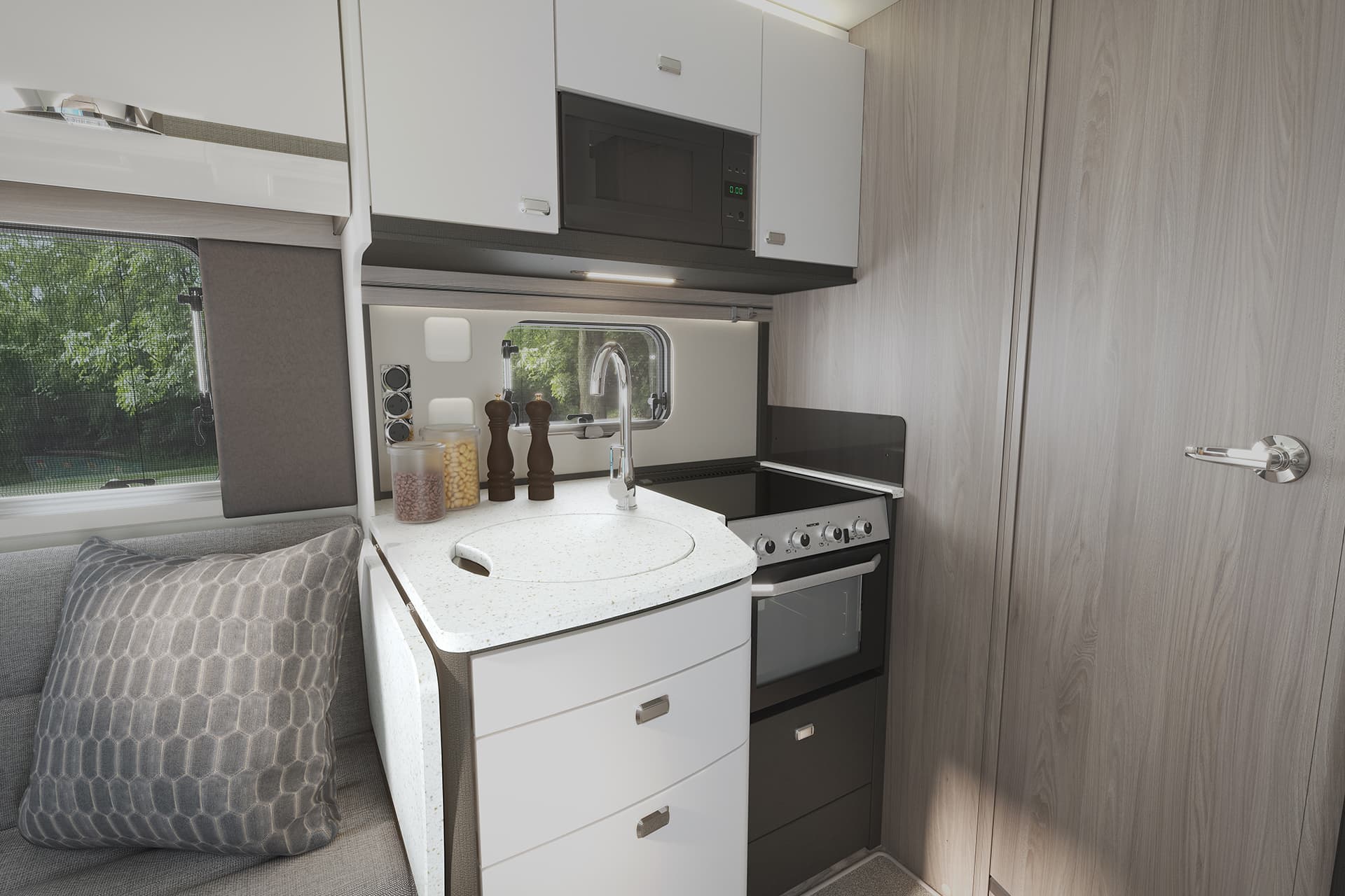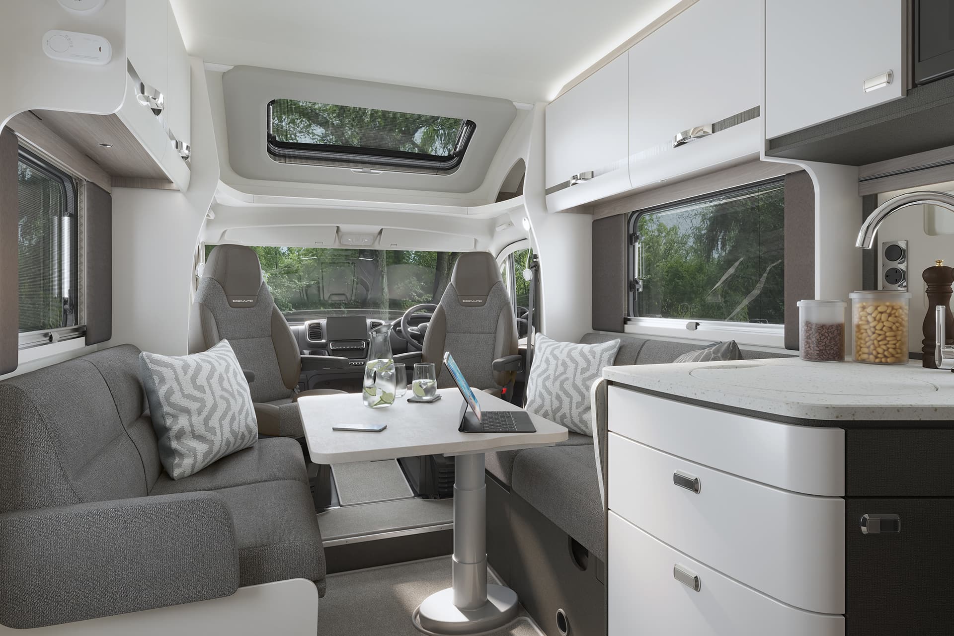 The ever-popular Swift Escape is back with a striking new look for 2026. Featuring refreshed exterior graphics and a stylish new soft furnishing scheme, Escape blends modern design with all the practical features you’d expect from a premium motorhome. From Aguti travelling seats to streamlined furniture and a boutique-style washroom, every detail is crafted for comfort and convenience.