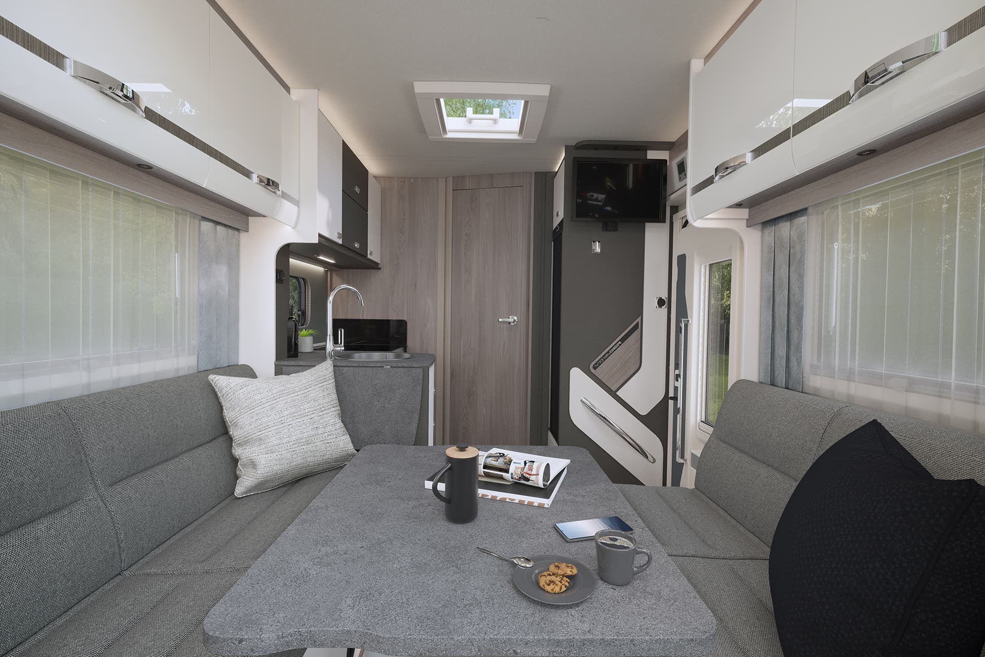 The award-winning Swift Voyager is designed for families who seek adventure without compromising on comfort. For 2026, the Voyager boasts updated exterior graphics, giving it a modern, bold new look that stands out on every journey. Inside, the refreshed soft furnishings elevate the spacious, family-friendly interior, making it the perfect choice for those who want to explore the world in style and comfort.