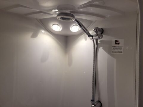 There is a Washroom with seperate toilet, shower & wash hand basin inside,middle kitchen area