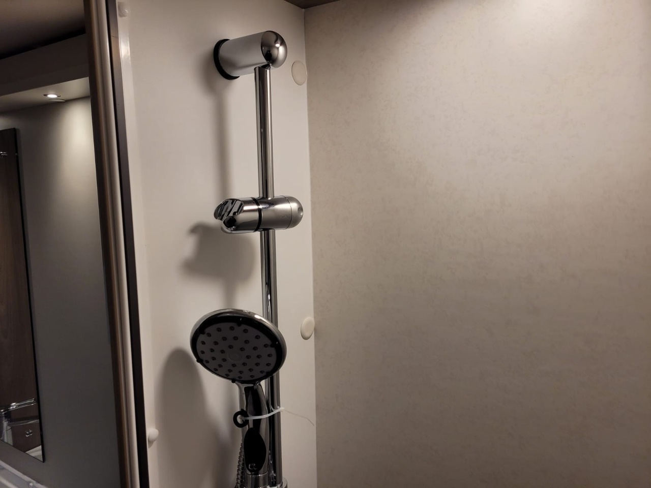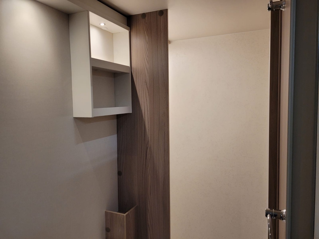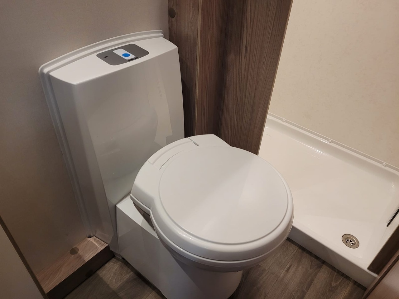 Adjacent to the kitchen is the washroom, cleverly designed to maximise space and comfort. It features a toilet, wash basin and separate shower, providing everything you need for independent living on the road.