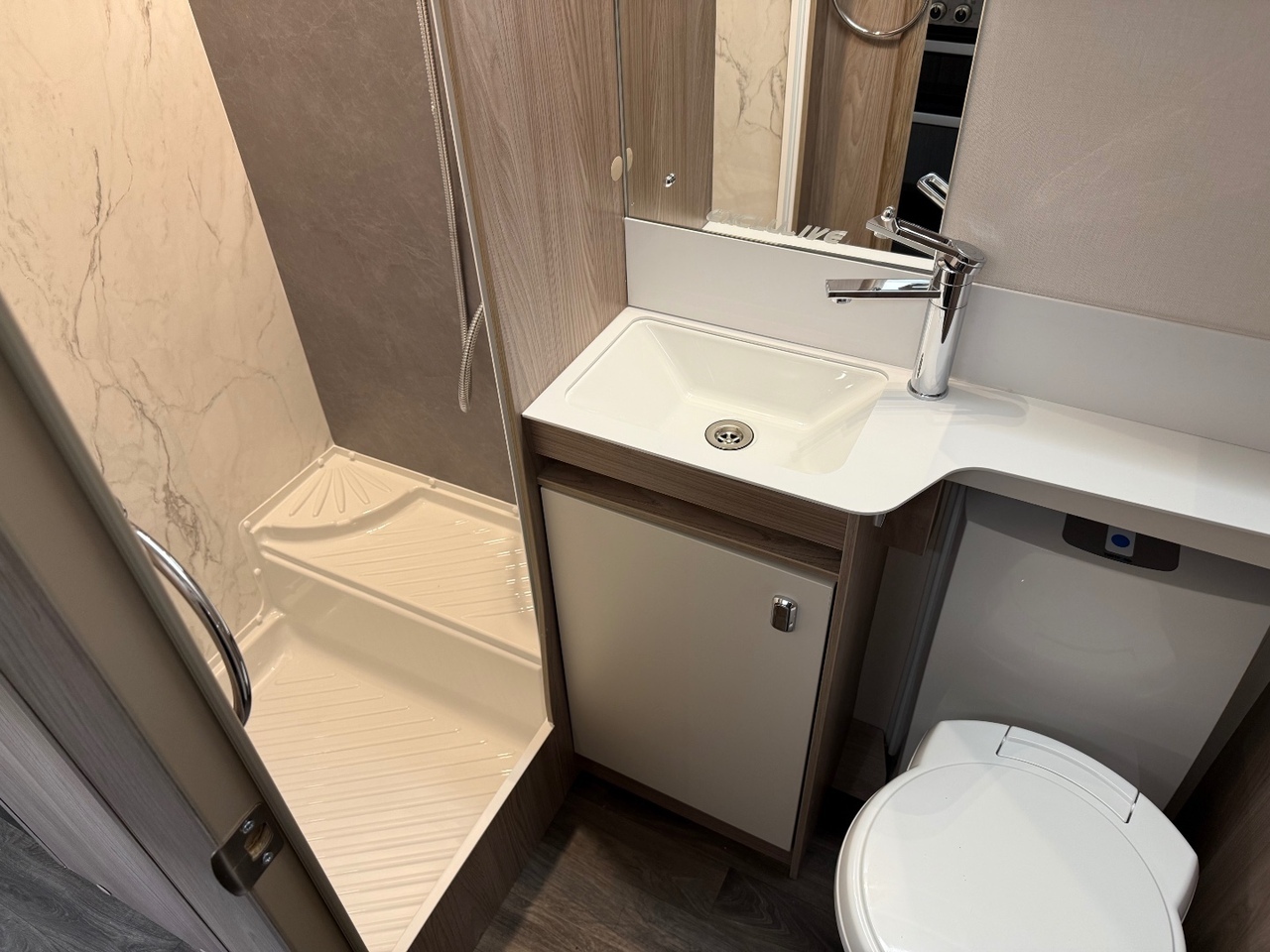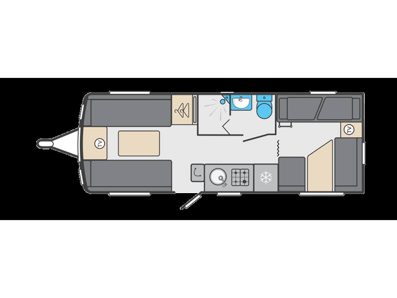 Adjacent to the kitchen is the washroom, which includes a toilet, wash basin and shower, giving you everything you need for comfortable trips away.