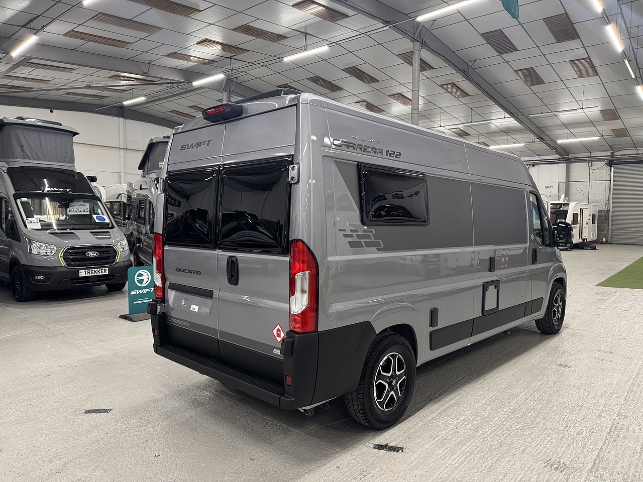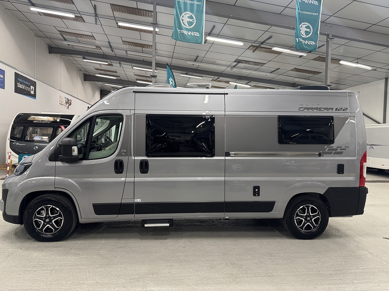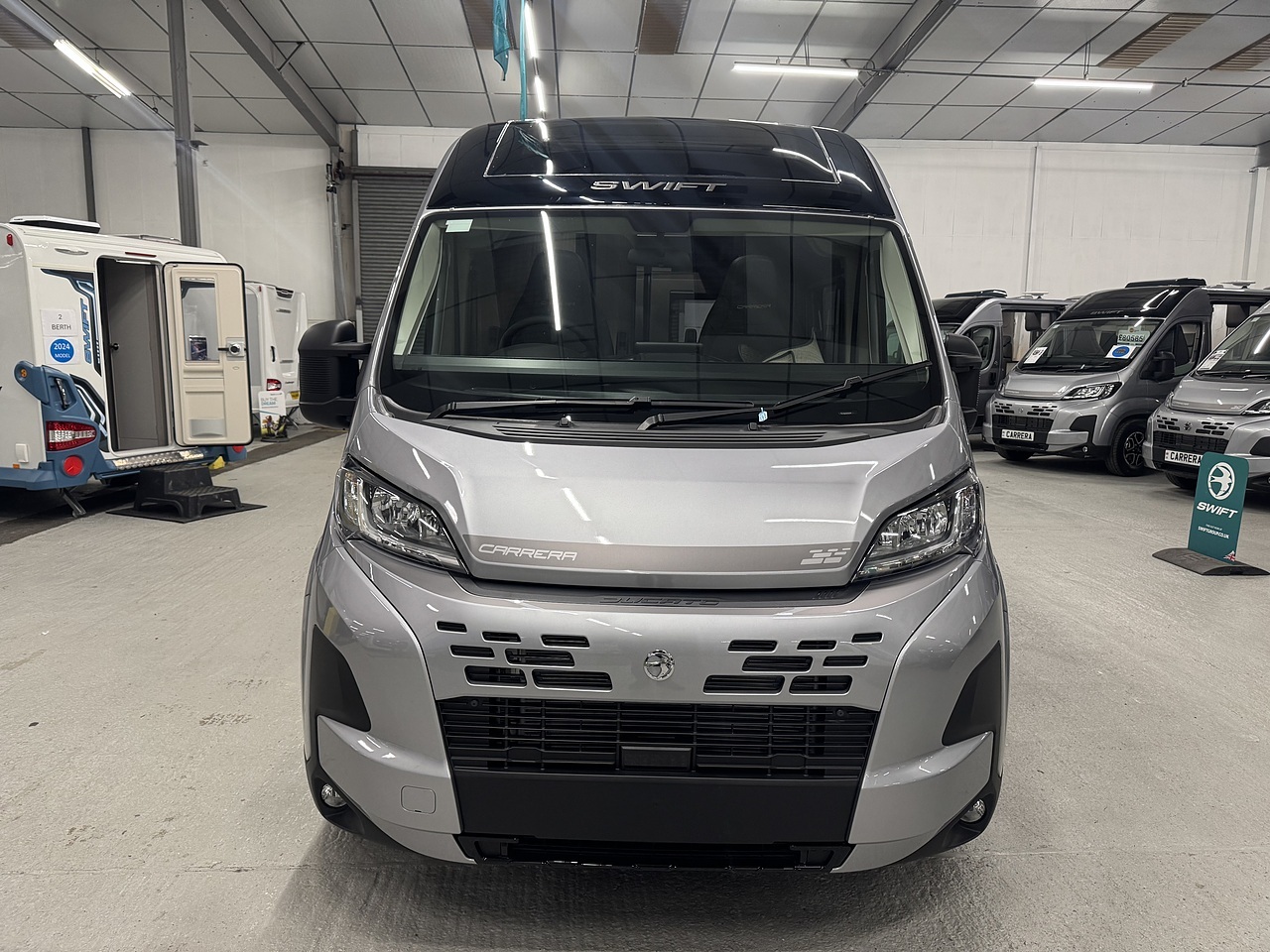 We have for sale this stunning 2026 Swift Carrera 122 based on the powerful Fiat Ducato 2.2 140 BHP Automatic chassis. Designed for those who love adventure without compromising on comfort, the Carrera 122 combines premium Swift craftsmanship with sleek modern styling and a practical, flexible layout ideal for couples or small families.