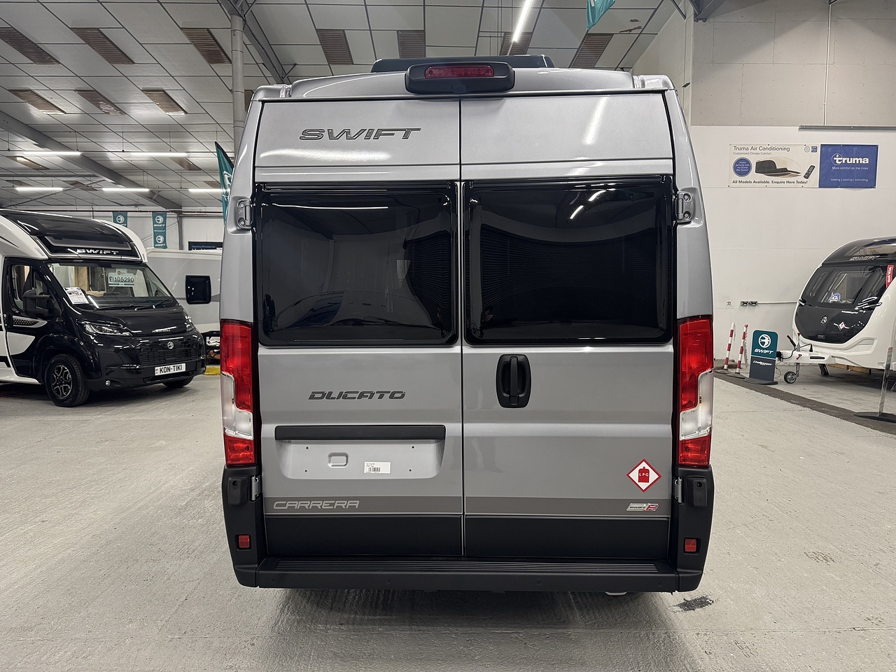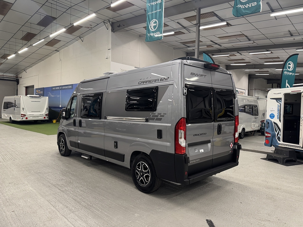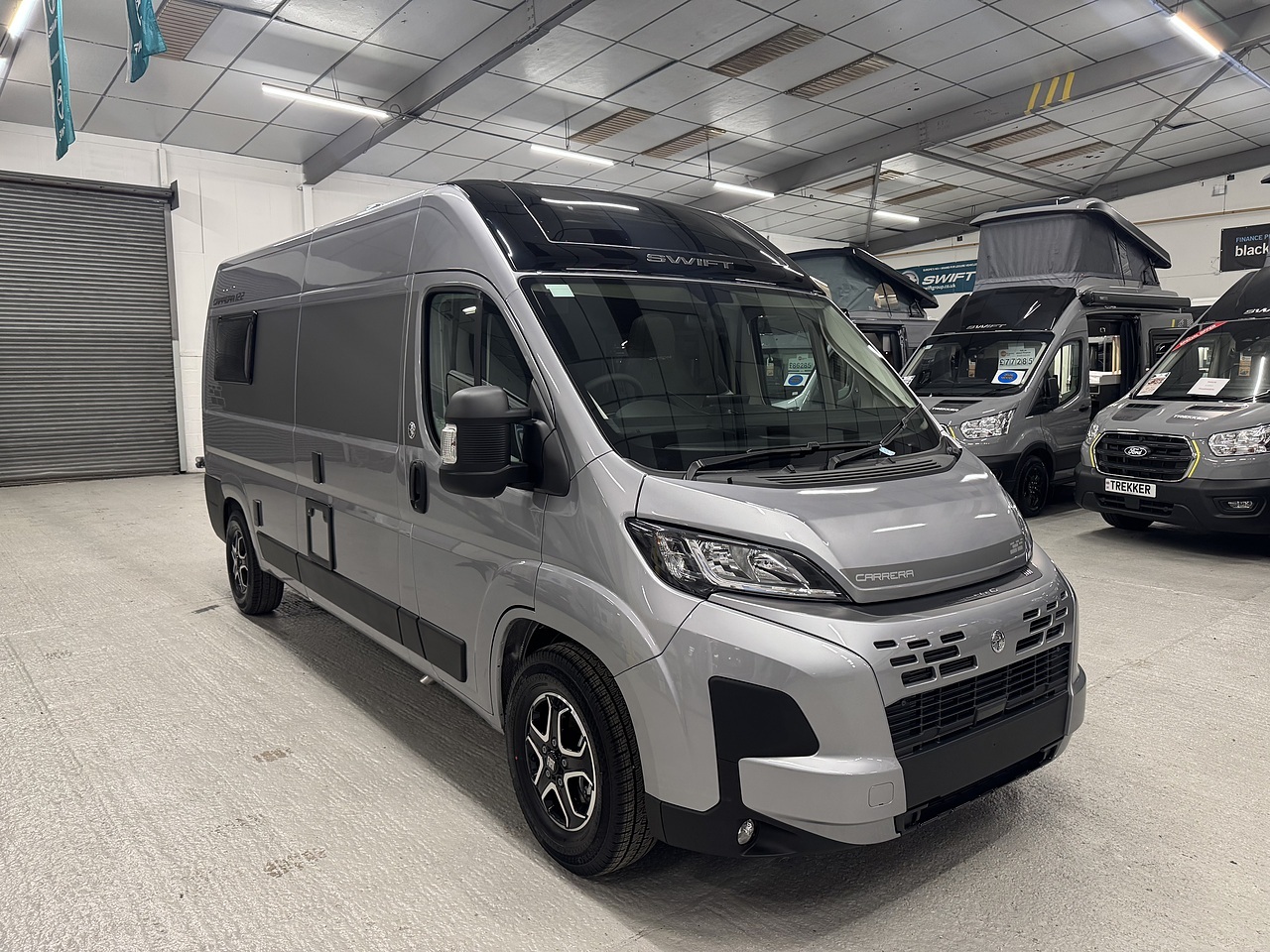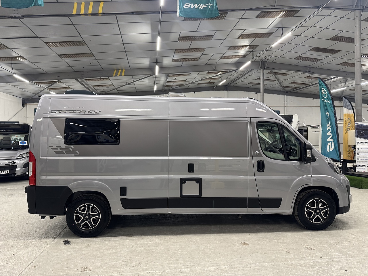 We have for sale this stunning 2026 Swift Carrera 122 based on the powerful Fiat Ducato 2.2 140 BHP Automatic chassis. Designed for those who love adventure without compromising on comfort, the Carrera 122 combines premium Swift craftsmanship with sleek modern styling and a practical, flexible layout ideal for couples or small families.