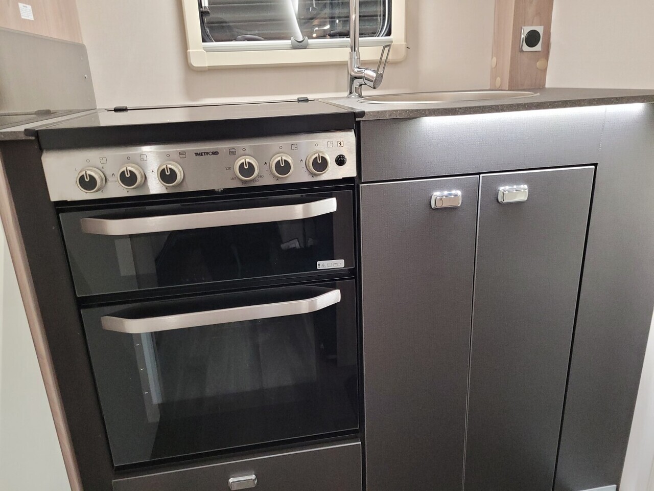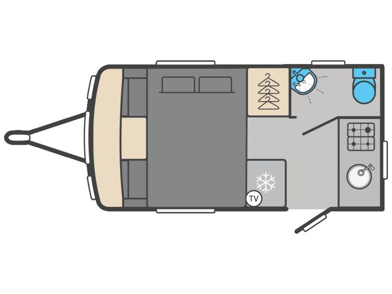 By night, the seating effortlessly converts into a generous double bed, making excellent use of the caravan’s compact footprint.