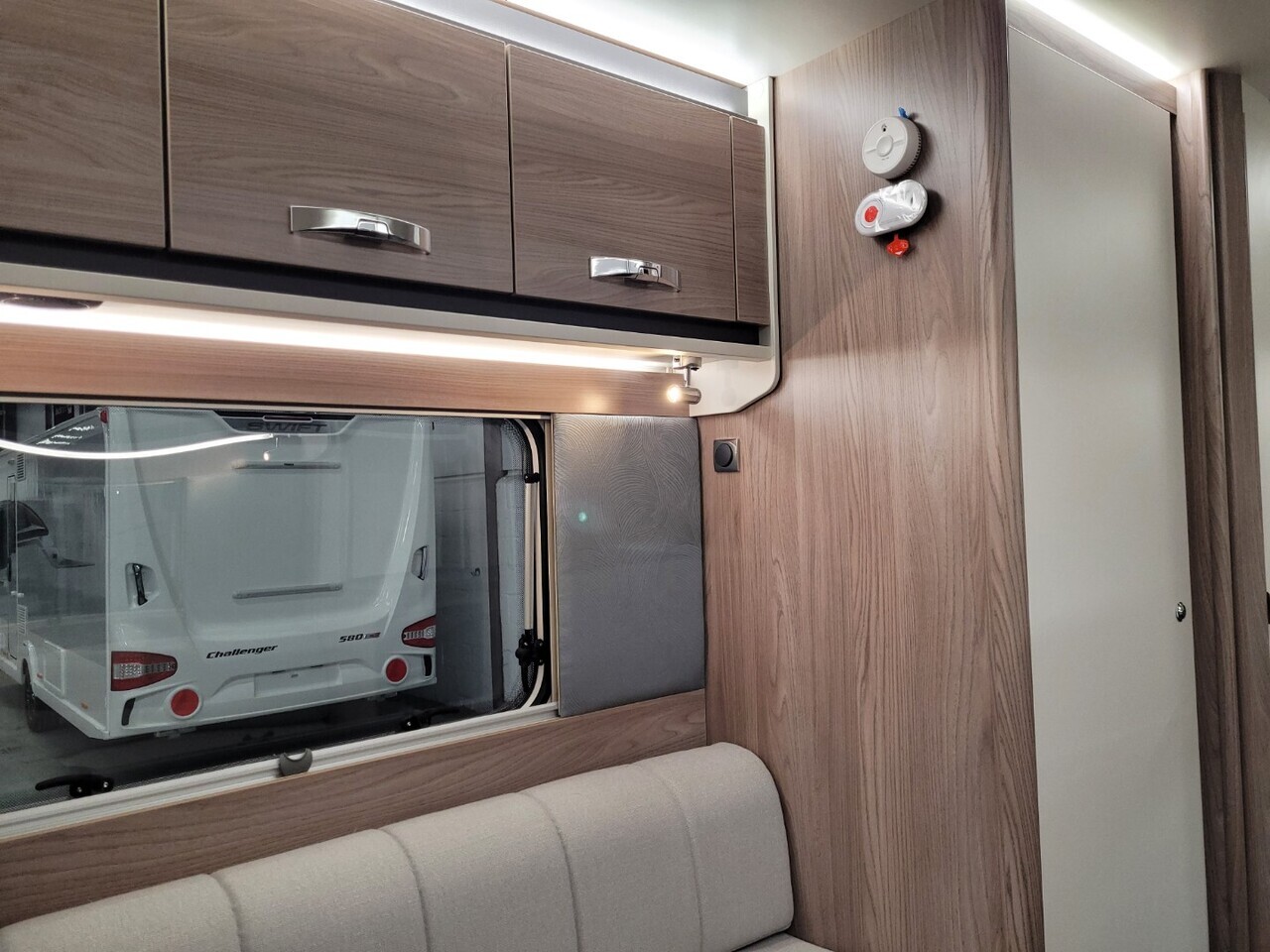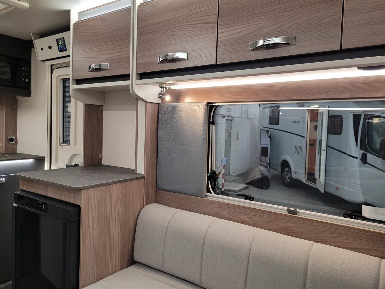 At the front, the lounge features two parallel bench seats that create a bright and relaxing space thanks to the large panoramic window. This area offers plenty of room to unwind during the day.