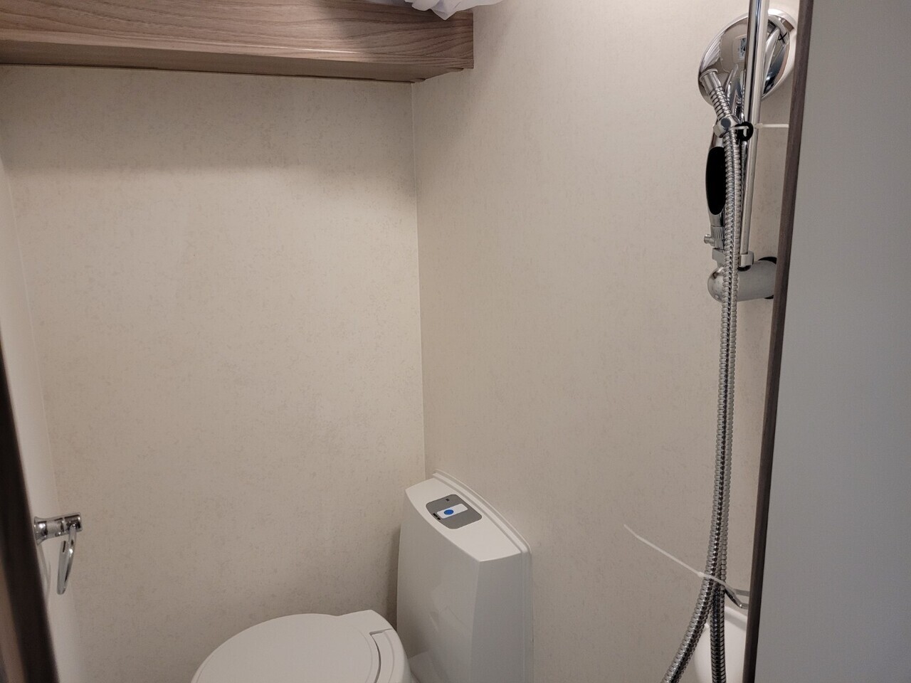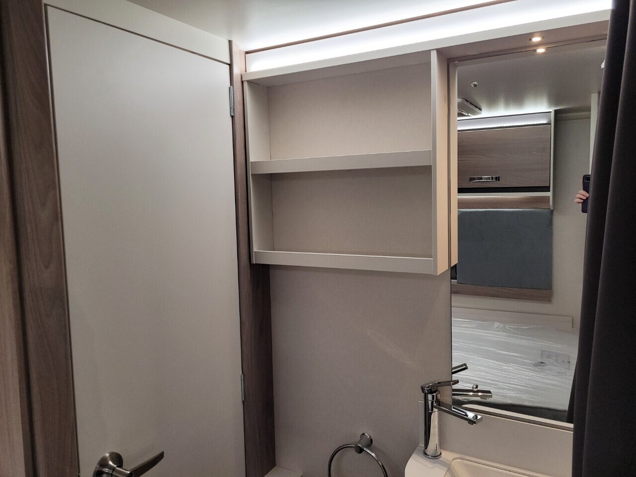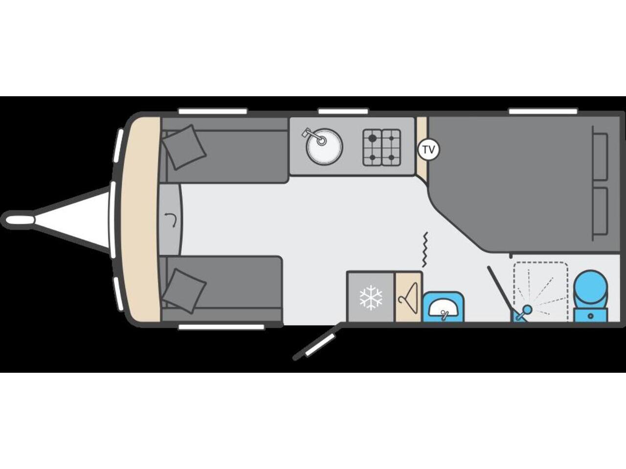 At the very back, you’ll find the full width washroom with toilet, wash basin and a separate walk in shower. This private area provides all the comfort and convenience you’d expect from a premium Swift tourer.