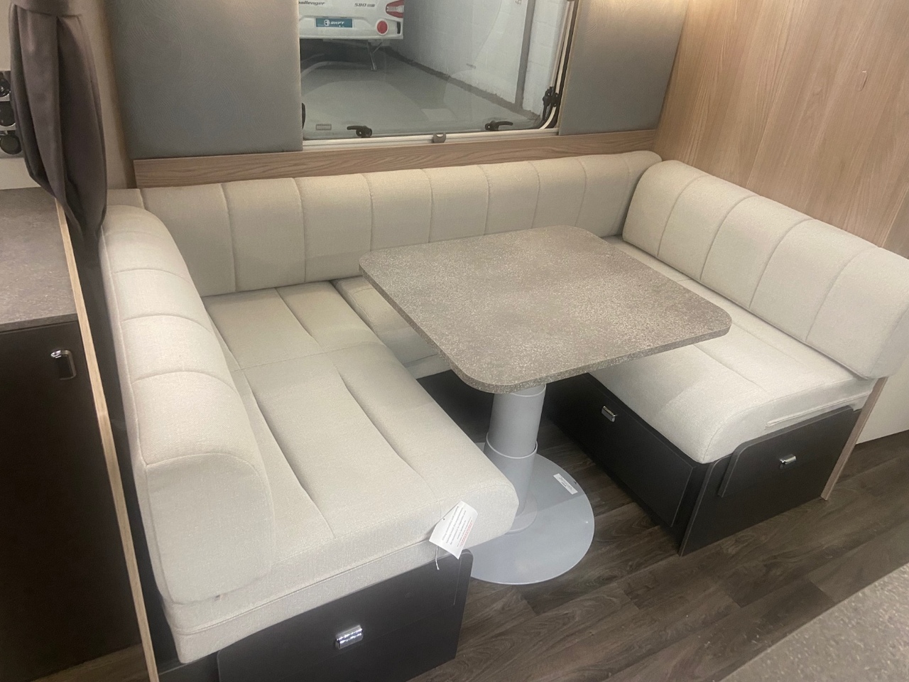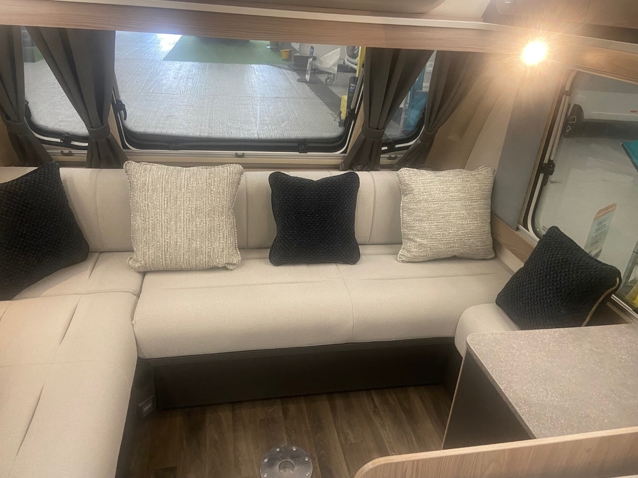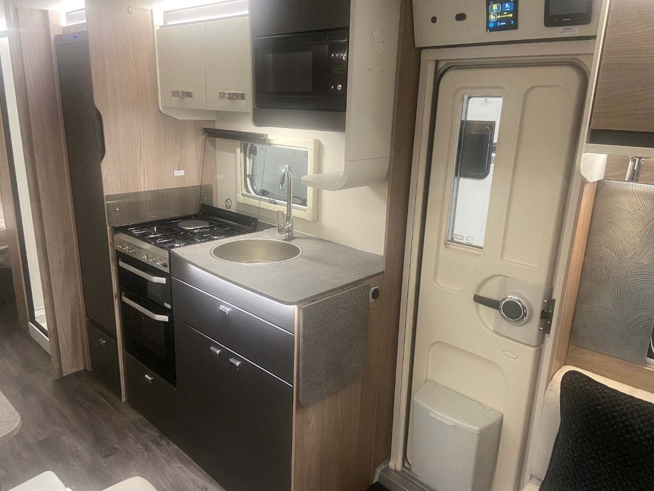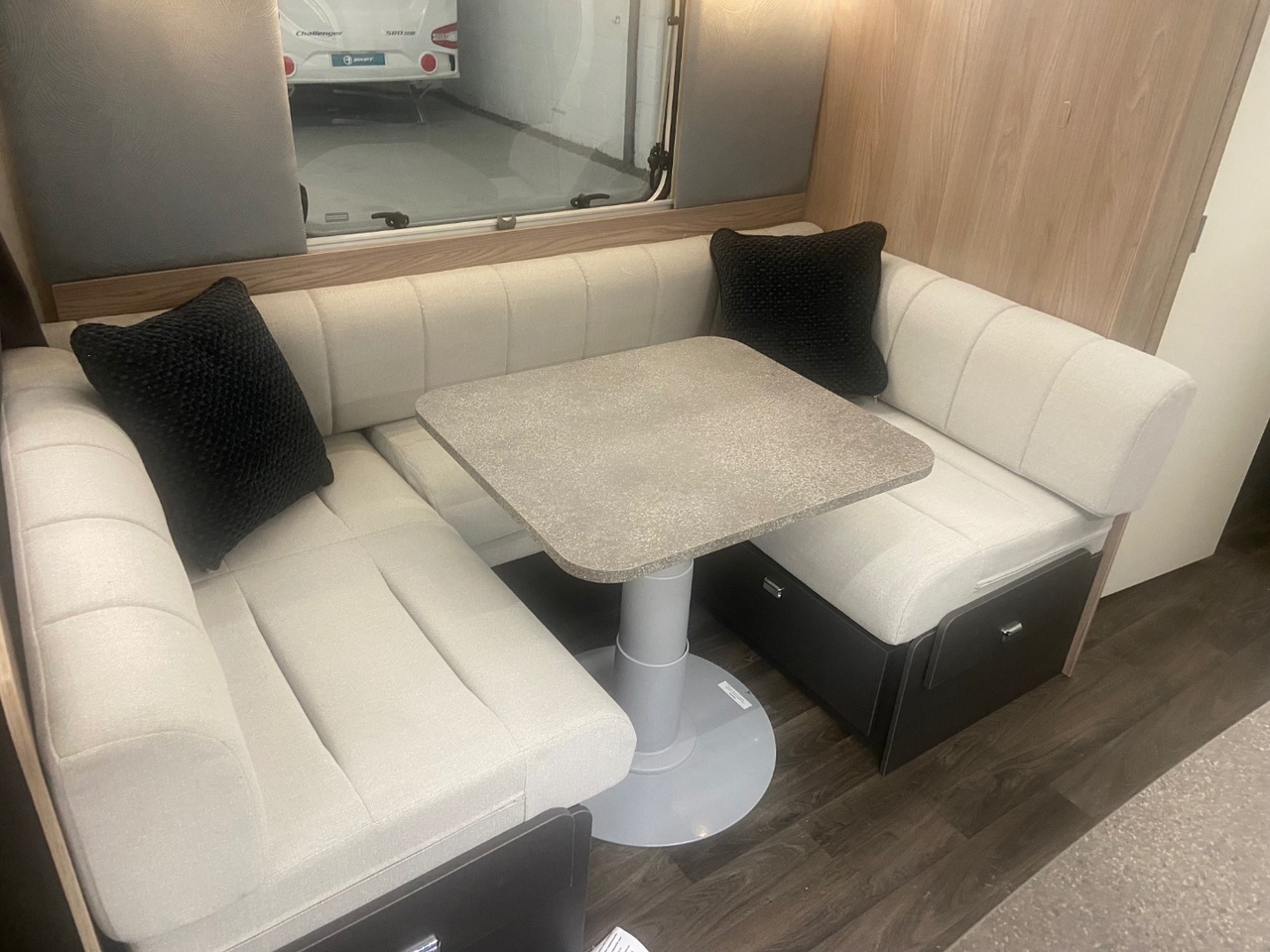 At the front you’ll find a bright and modern L shaped lounge, designed to create a comfortable and sociable living area that’s perfect for relaxing after a day of adventure. The seating easily converts into an additional double bed when required, providing flexible sleeping arrangements for family or guests.