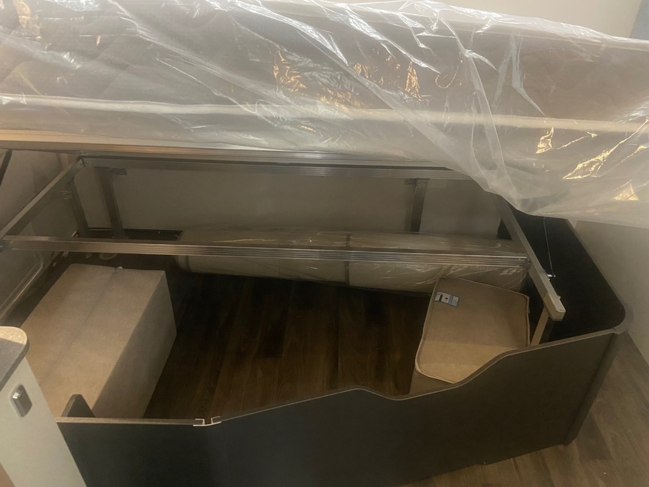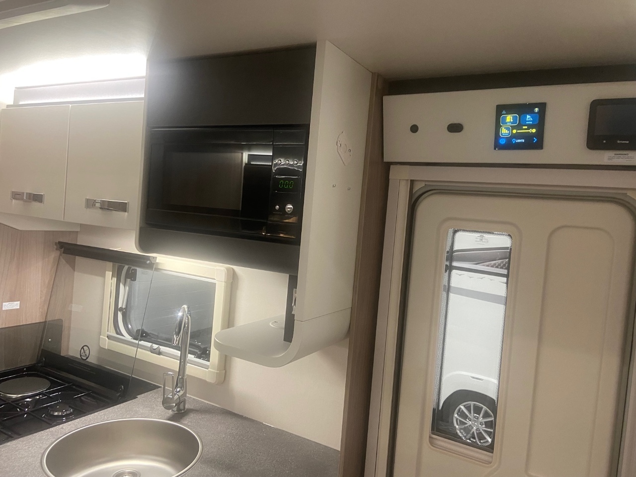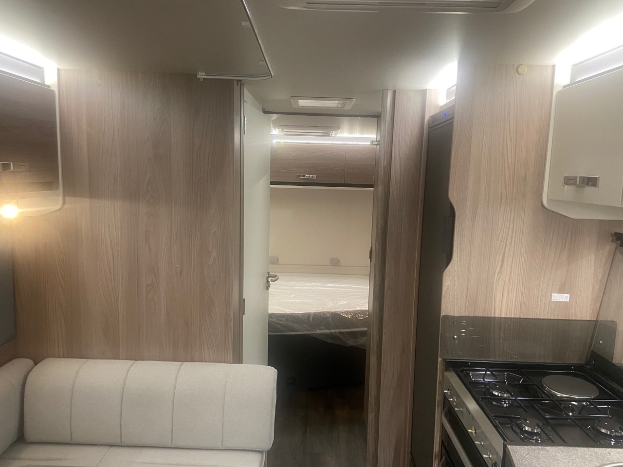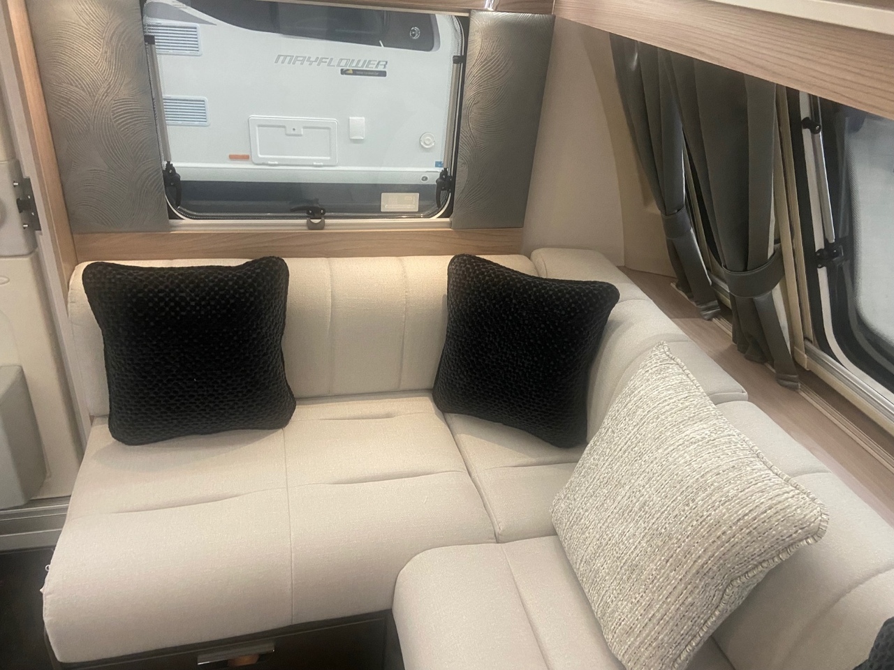 At the front you’ll find a bright and modern L shaped lounge, designed to create a comfortable and sociable living area that’s perfect for relaxing after a day of adventure. The seating easily converts into an additional double bed when required, providing flexible sleeping arrangements for family or guests.