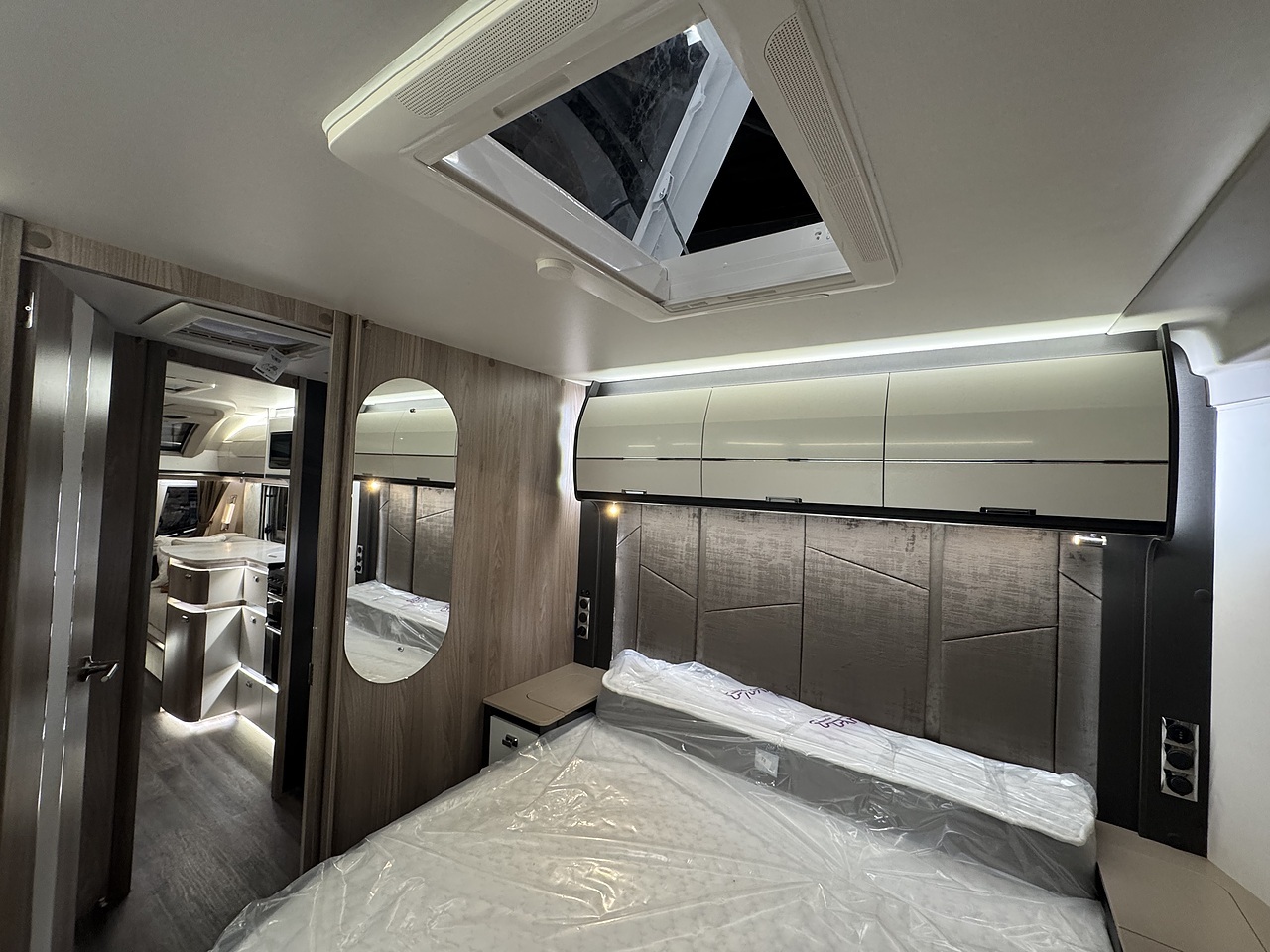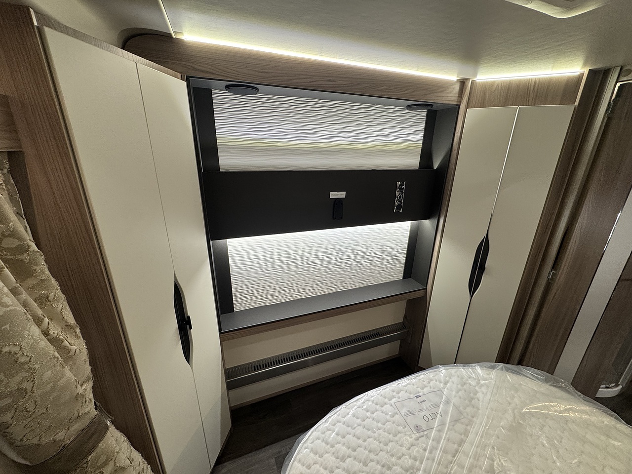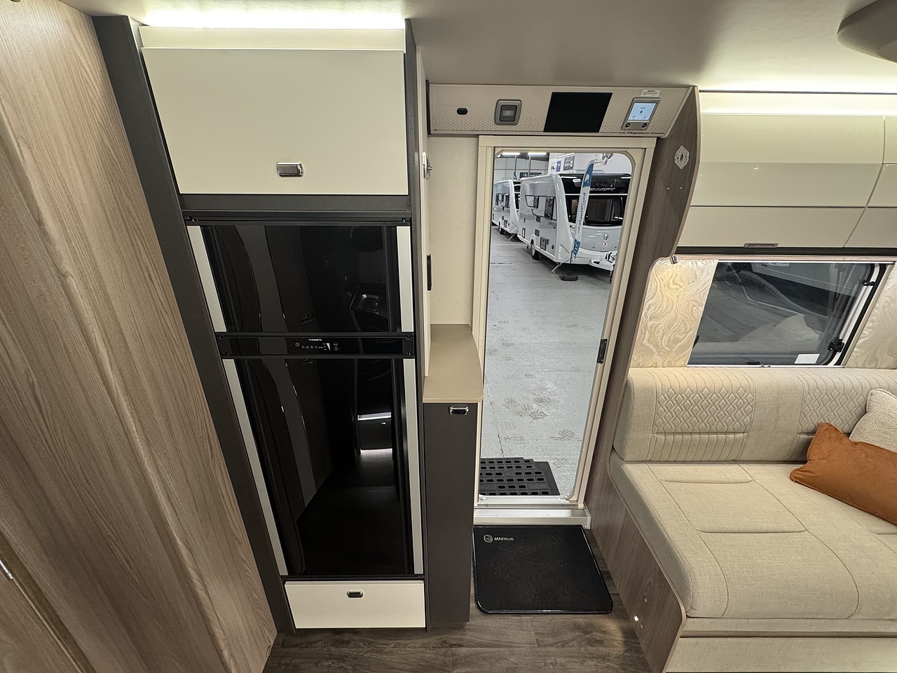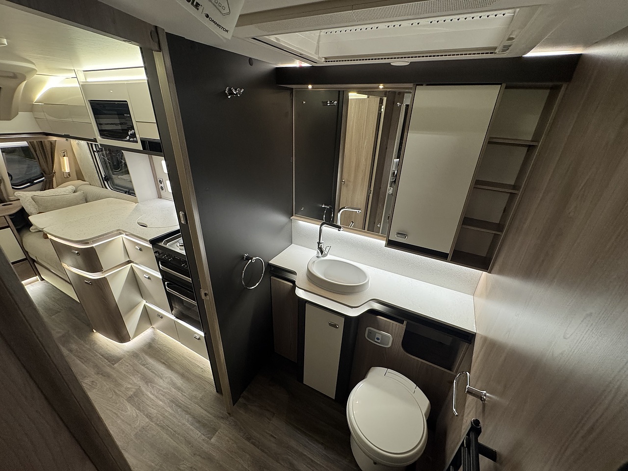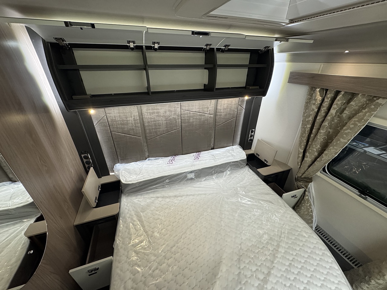 At the front, the parallel lounge showcases true elegance. Premium soft furnishings, ambient lighting and superior build quality combine to create a relaxing, high-end living space. Whether you're unwinding after a day exploring or entertaining guests, the lounge feels more like a luxury apartment than a touring caravan.