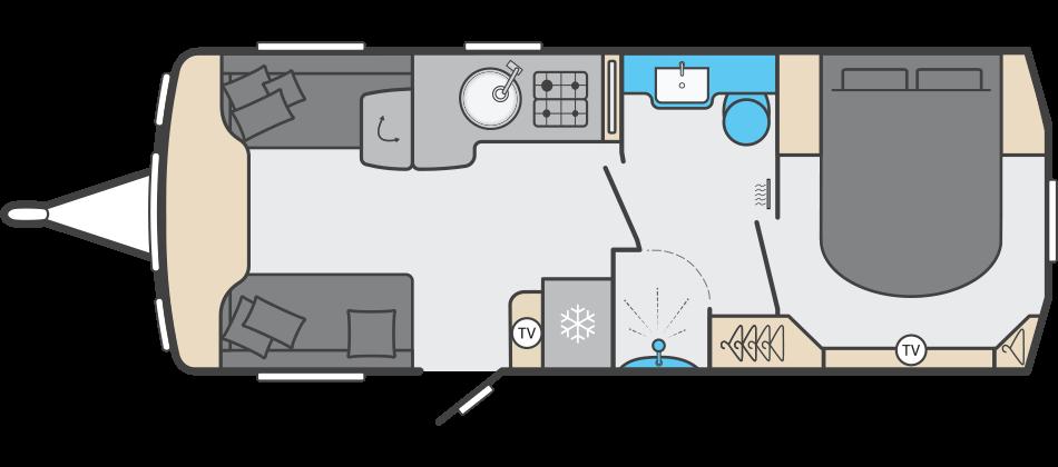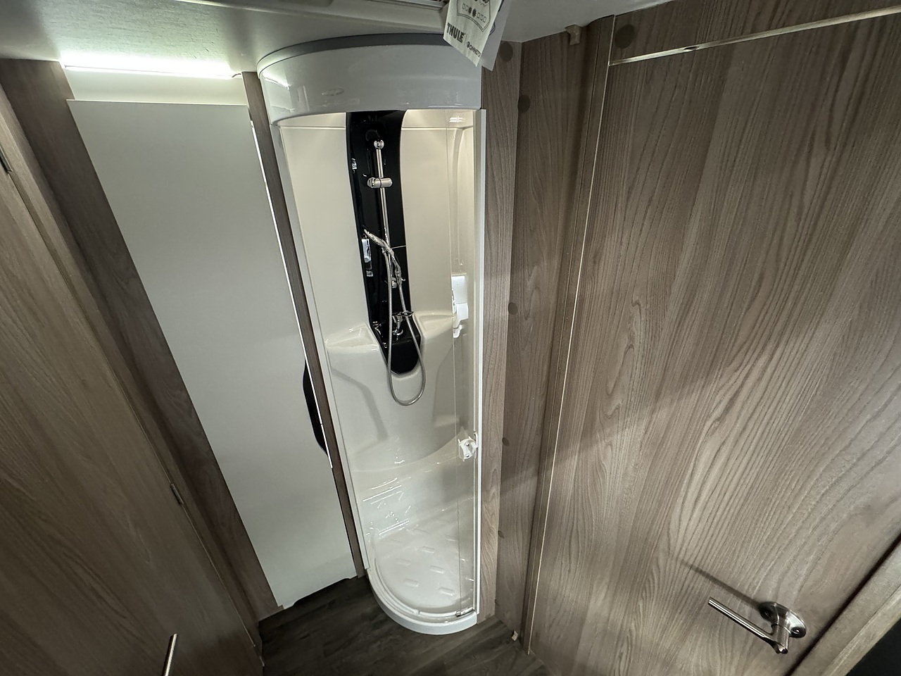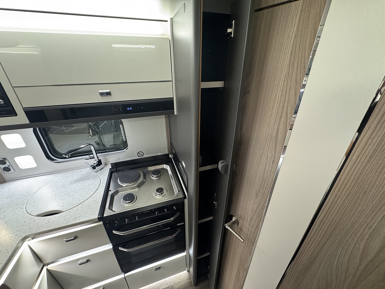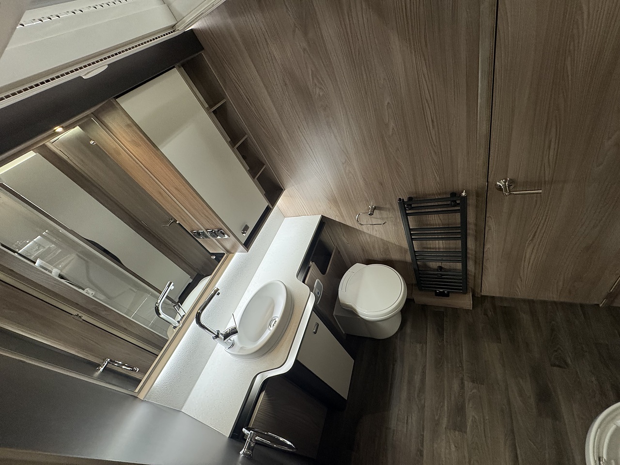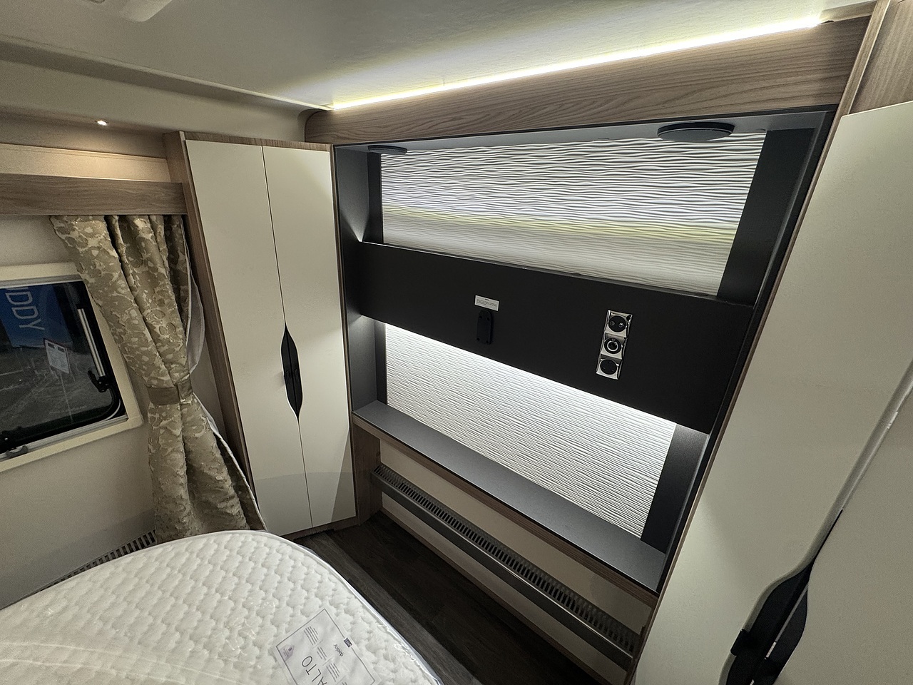 At the front, the parallel lounge showcases true elegance. Premium soft furnishings, ambient lighting and superior build quality combine to create a relaxing, high-end living space. Whether you're unwinding after a day exploring or entertaining guests, the lounge feels more like a luxury apartment than a touring caravan.