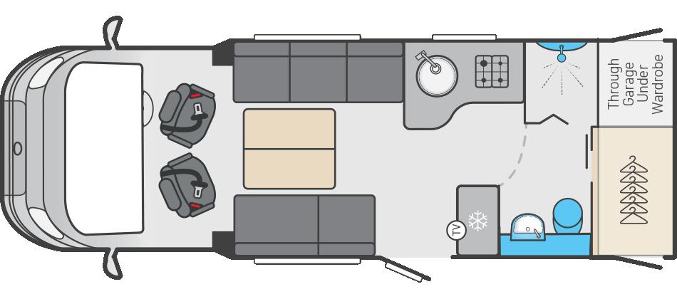 Overall, the Trekker 540 delivers a light, open and functional layout that is easy to live with day to day. It’s an ideal choice for couples or small familes looking for a compact campervan with flexible storage and smart design.
