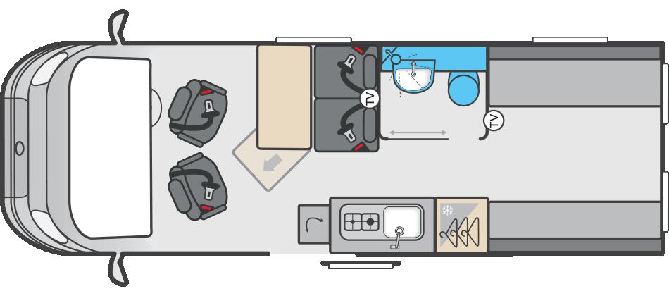 At the rear, the flexible sleeping arrangement provides comfort without compromising storage. With a spacious garage area beneath, there is plenty of room for bikes, outdoor furniture and all your adventure essentials.