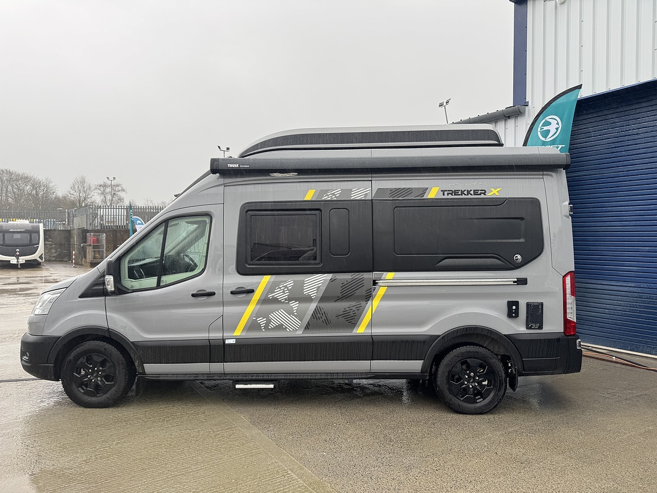 Built on the Ford Transit Trail chassis, the Trekker X benefits from distinctive exterior styling including the Trail front grille, wide body side mouldings and an exclusive graphics scheme that gives it a strong, purposeful road presence. It looks every bit as capable as it performs.