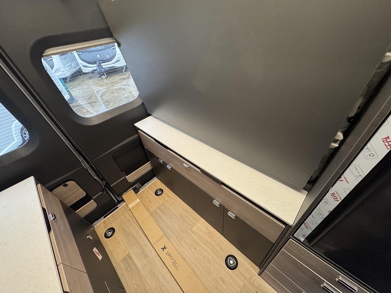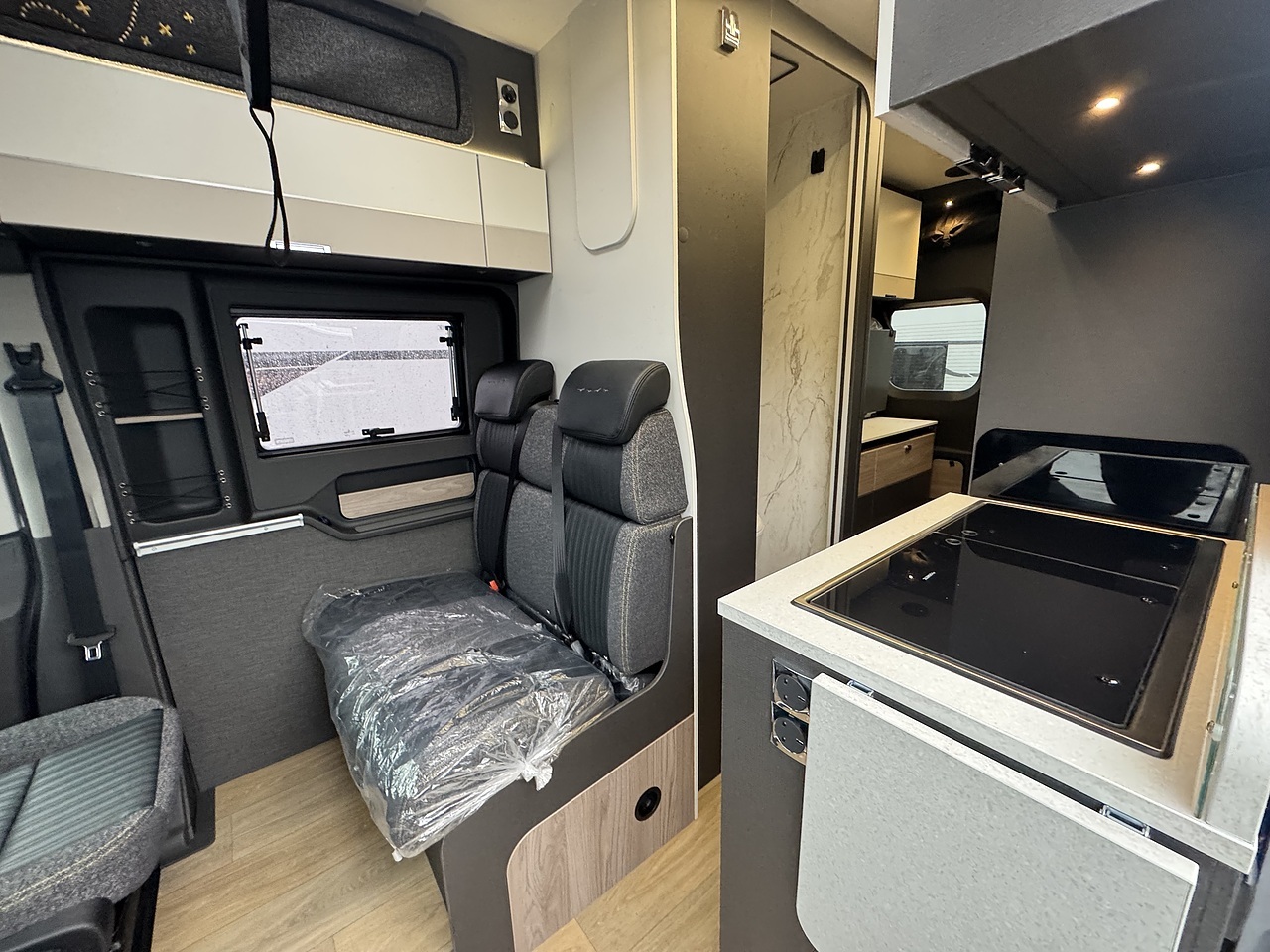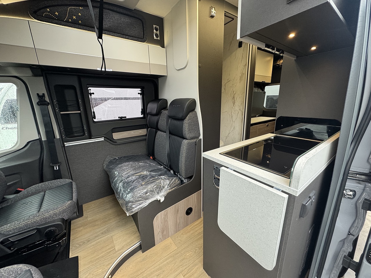Step inside and you are welcomed into a bright and contemporary living space. The front lounge integrates seamlessly with the swivel cab seats, creating a comfortable and sociable area for dining or relaxing. Large windows and a rooflight allow plenty of natural light, enhancing the feeling of space.