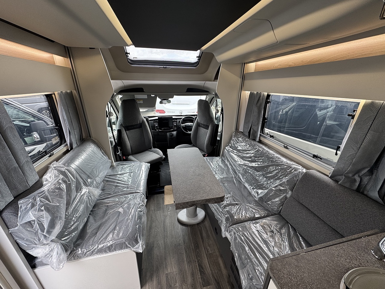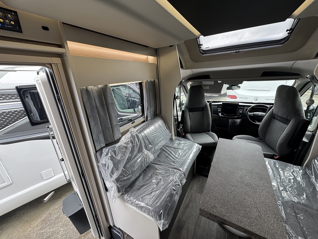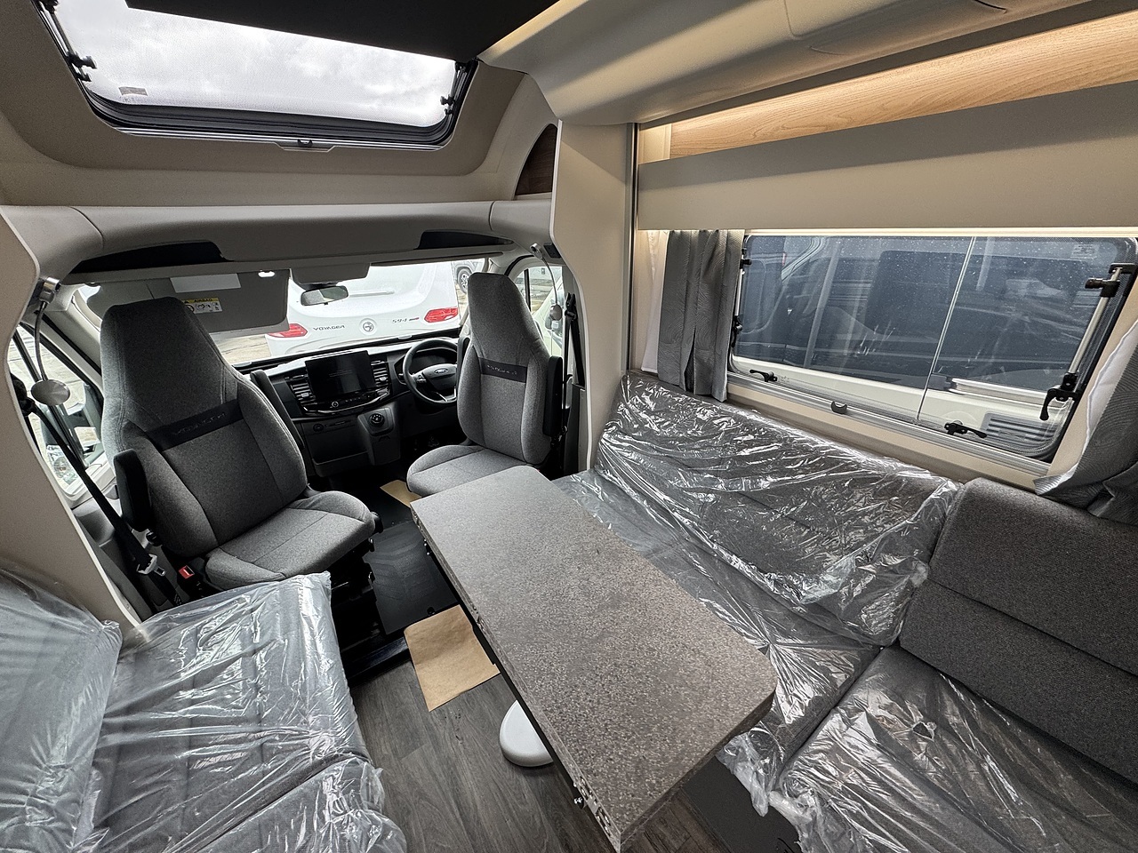 This Swift Voyager 540 is based on the Ford Transit 2.0 litre TDCi chassis which boasts 165 BHP which is also automatic. The Voyager range is adventure ready with a modern flair and family comfort. The layout consists of a spacious front lounge which takes full advantage of the driver and passenger seat swivel. The two bench seats also fold down to create two comfortable forward-facing seats. Above the captain seats there is also an impressive front rooflight for that extra feeling of openness.
