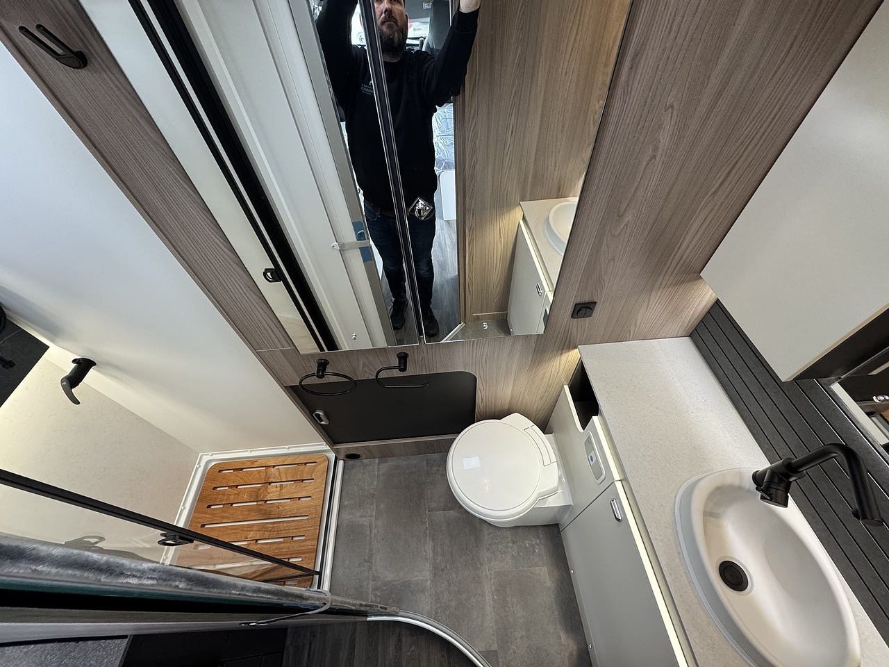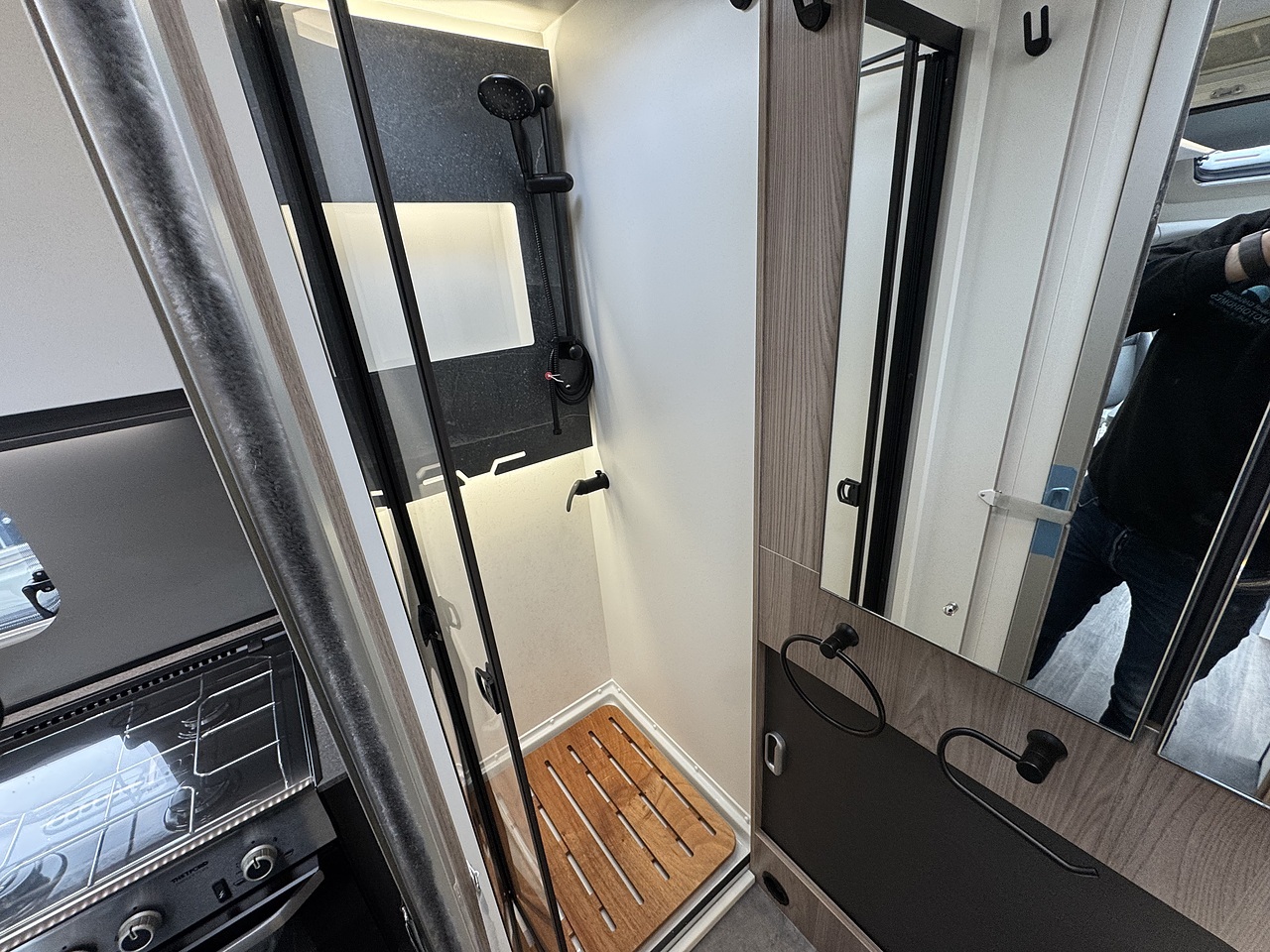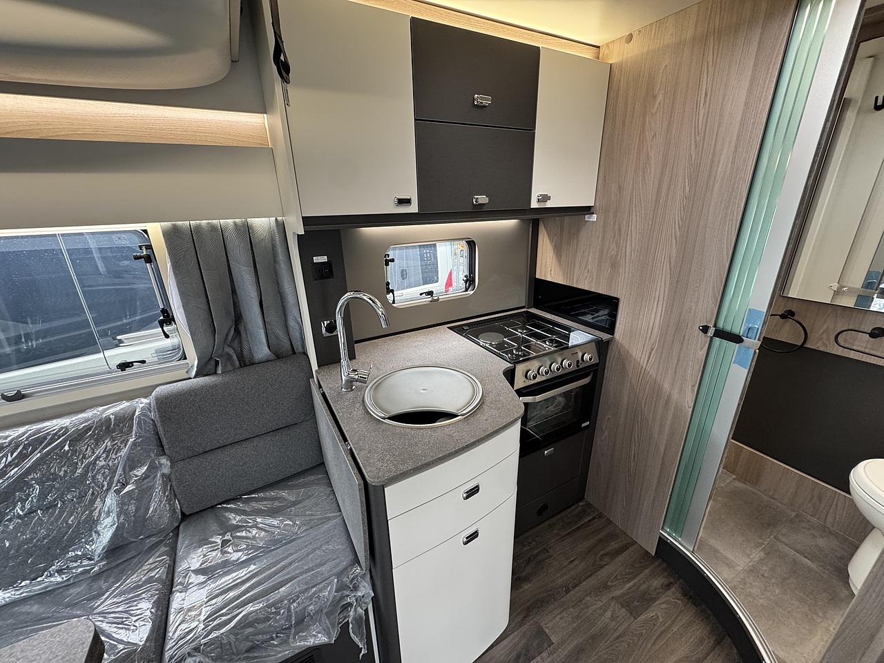 Through the kitchen area you enter the newly designed bathroom with separate bathroom and shower adjacent which can be closed off from both the bedroom and bathroom. This year they have new black washroom fittings adding even more to the luxury feel.