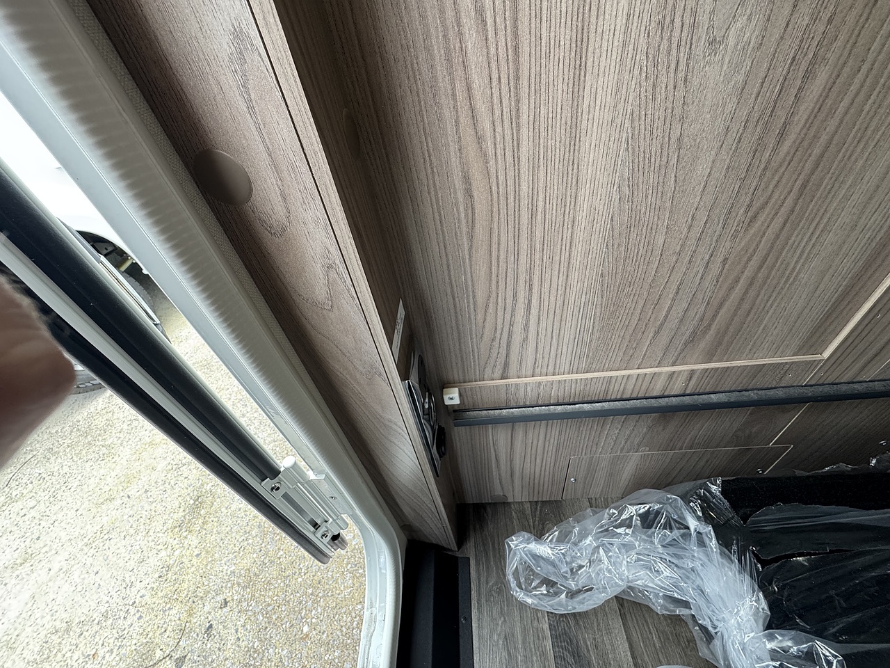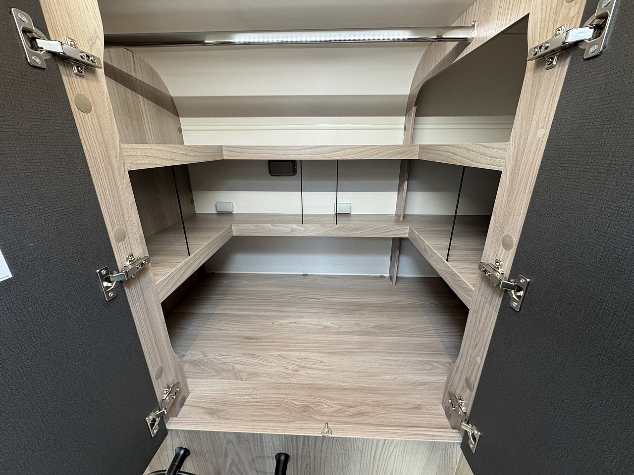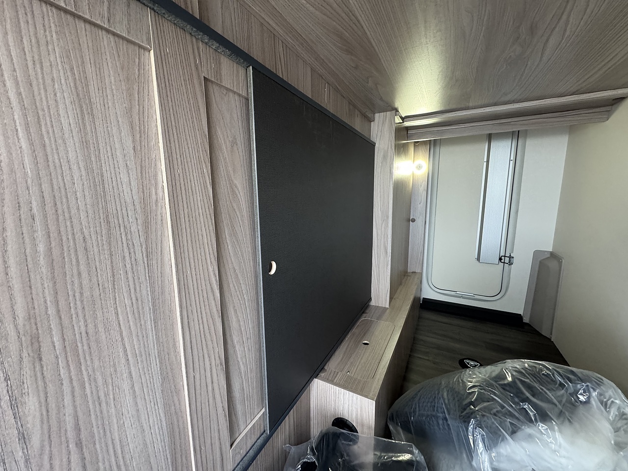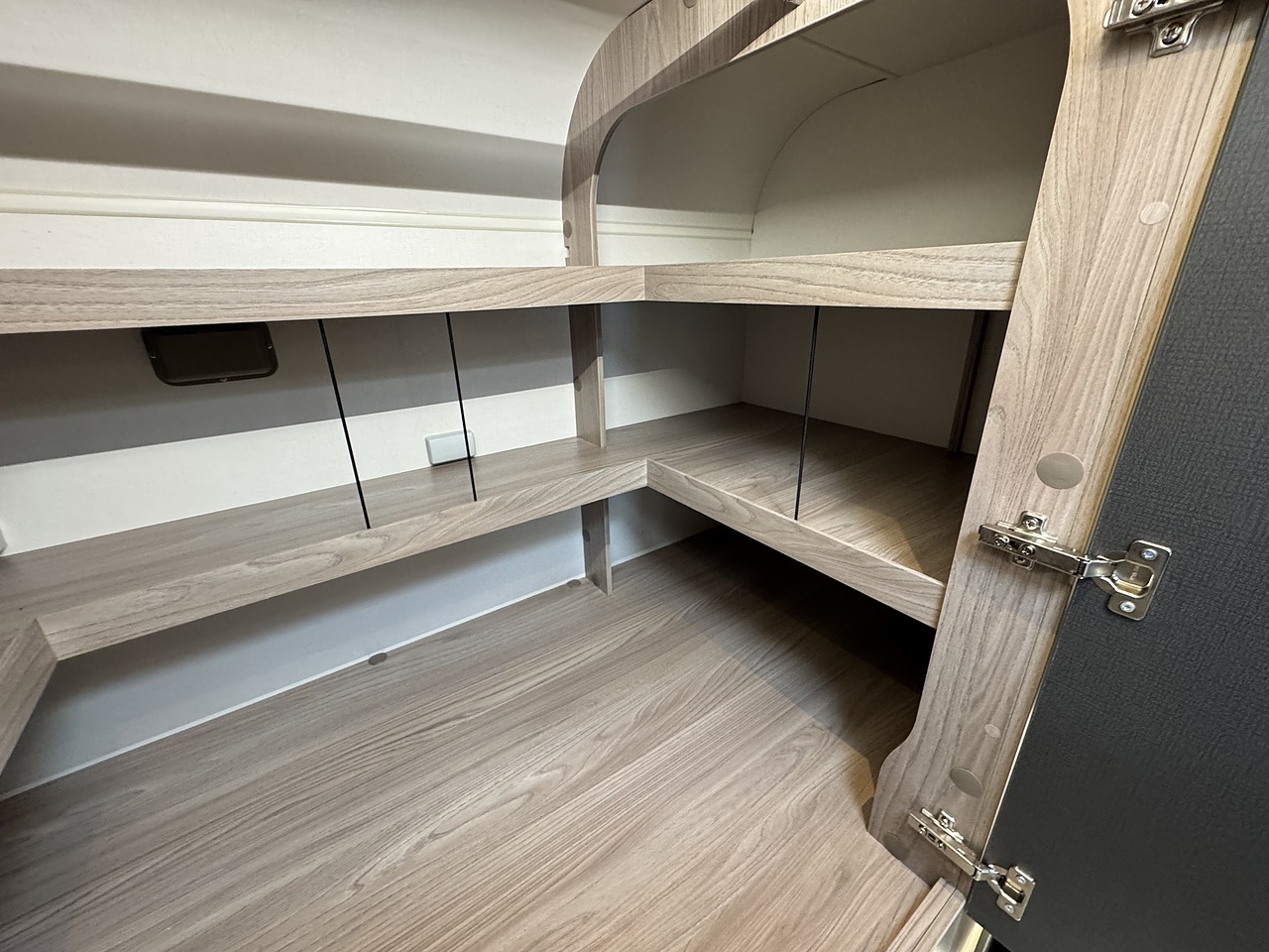 There is a huge lounge area with handy, table which will swilve and fold over and is electrically operated for lowering to make the lounge area into a bed. Above the lounge is a electrically operated drop down bed with comfy Duvalay mattress.