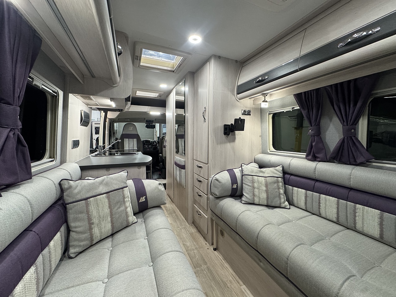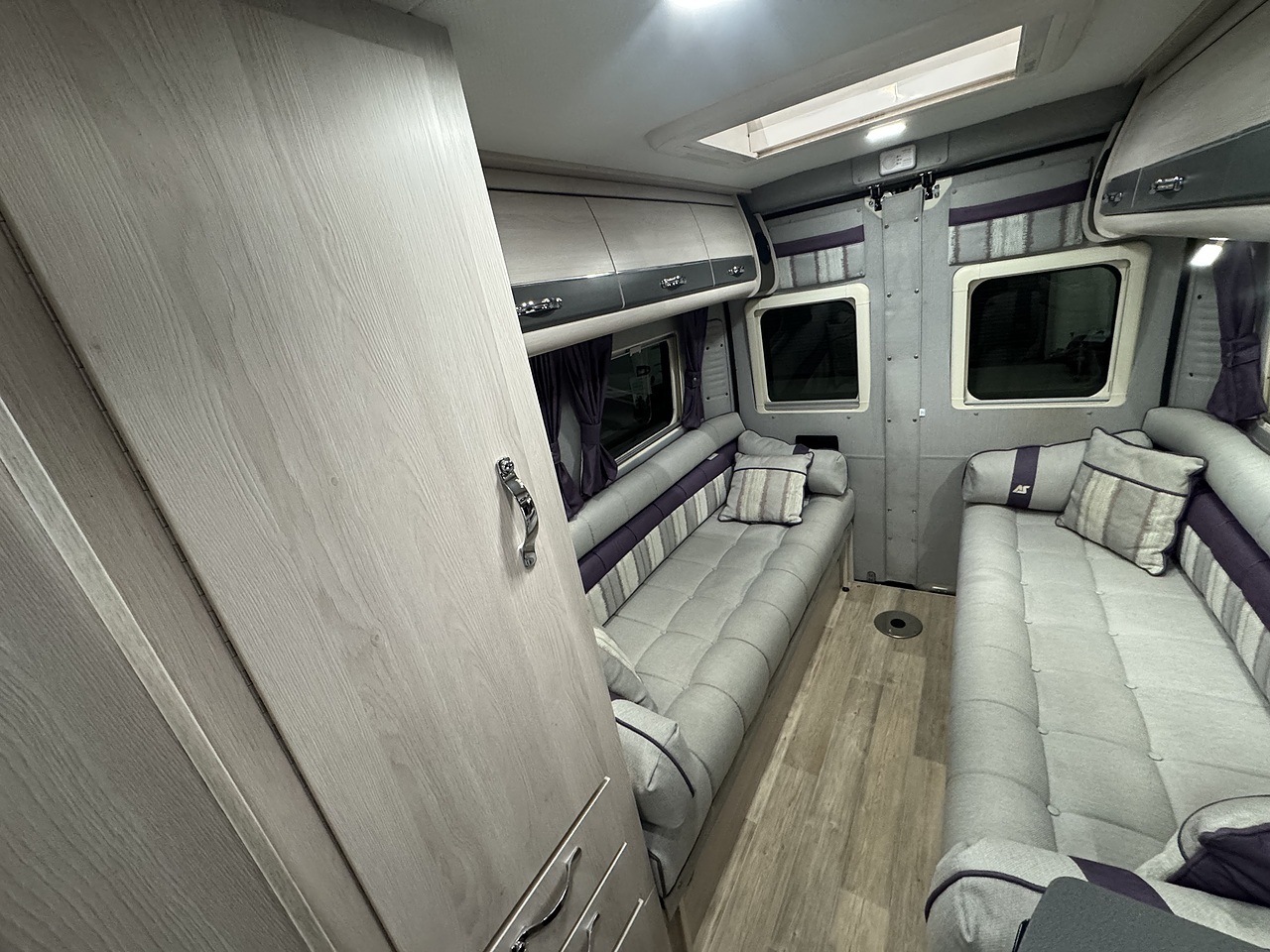 By night, the rear lounge converts with ease into either two generous singles or a large, sumptuous double bed, ensuring a restful night’s sleep wherever you stop. Clever storage throughout keeps everything organised without compromising living space.