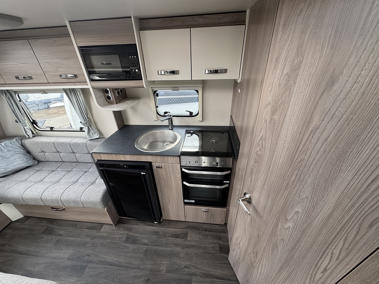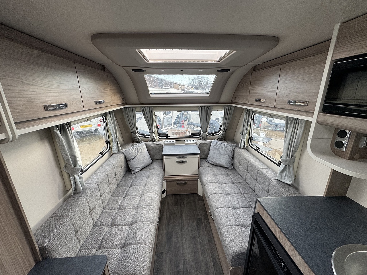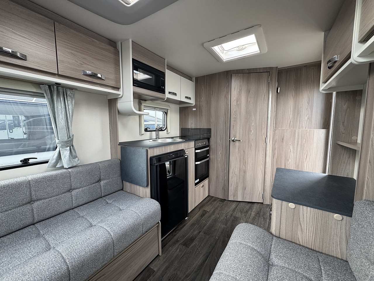 The Sprite comes with a good level of specification with features such as Truma blown air heating, Swift SMART construction. This caravan has also been fitted with a BBQ point and an external 230v socket.