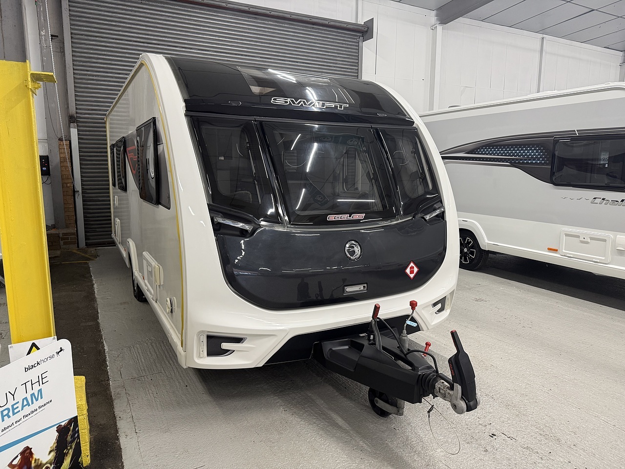 We have for sale this lovely 2018 Swift Eccles 530. This caravan has had 2 owners from new and comes with a full service history. The Eccles 530 is a popular 4 berth single axle caravan offering a bright and spacious interior with a front lounge, central kitchen with side dinette, and a large end washroom.